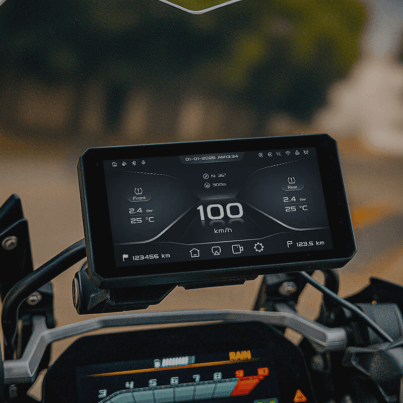 Entdecken Sie die JADO-Kollektion für Motorräder: JADO S6 Smart-Display mit CarPlay und Android Auto, wasserdichter 6-Zoll-Bildschirm (IP69K), Bluetooth-TPMS-Sensoren, Fernbedienung für den Lenker und Sony 2MP-Kamera. Hochwertiges elektronisches Zubehör für Touring- und Adventure-Motorräder mit schnellem Versand von Endurrad.